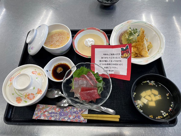 - 市場直送の新鮮な県産食材を優先的に使用し、食事満足に繋げてまいります。